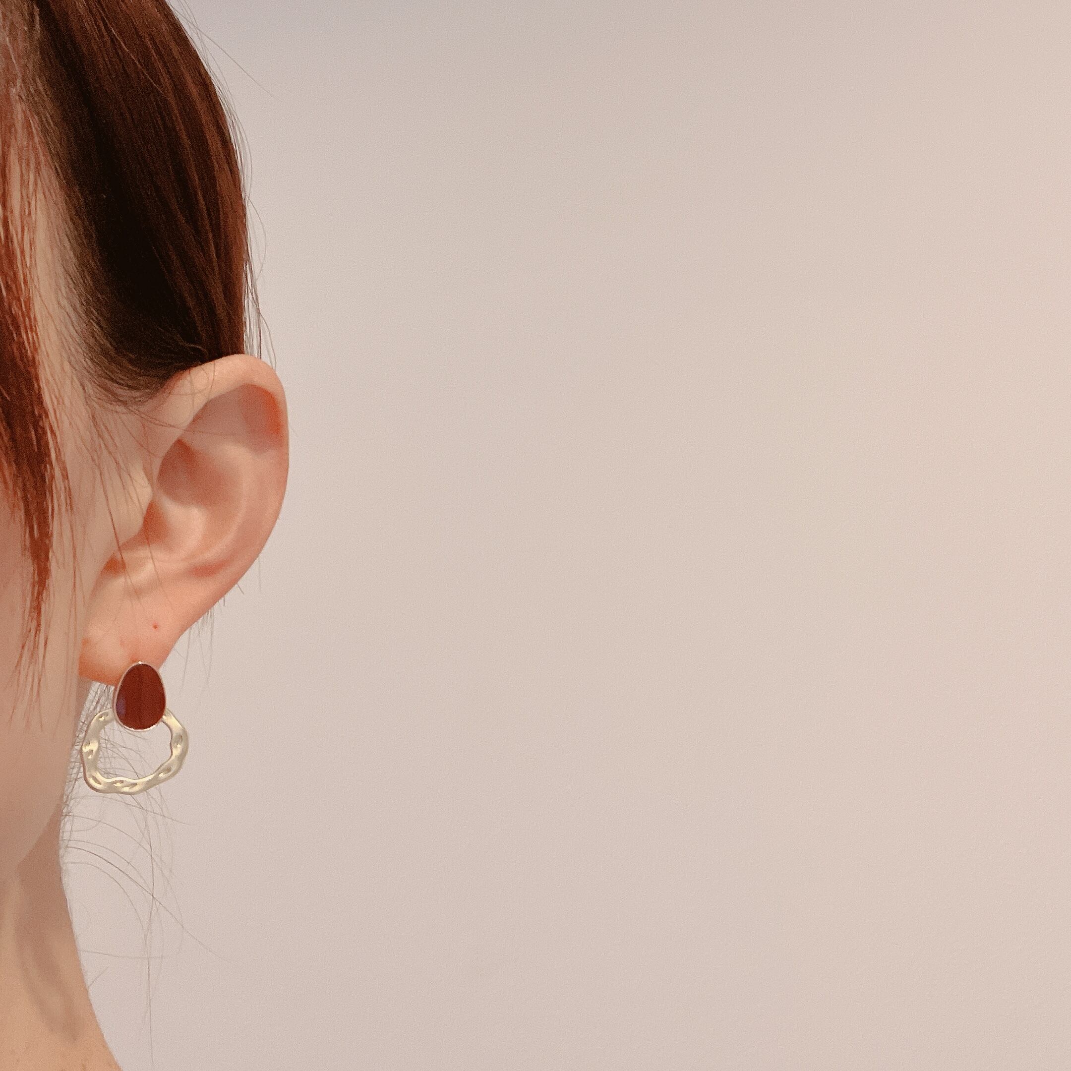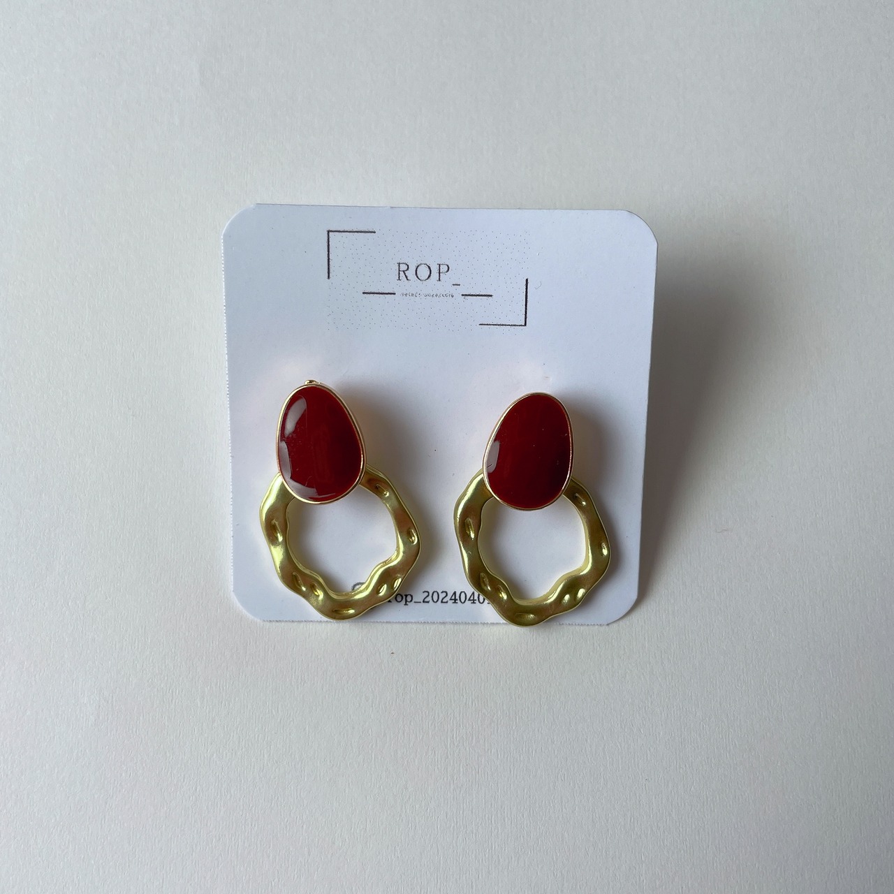カーマインの赤色とゴールドの組み合わせがかわいいピアス。